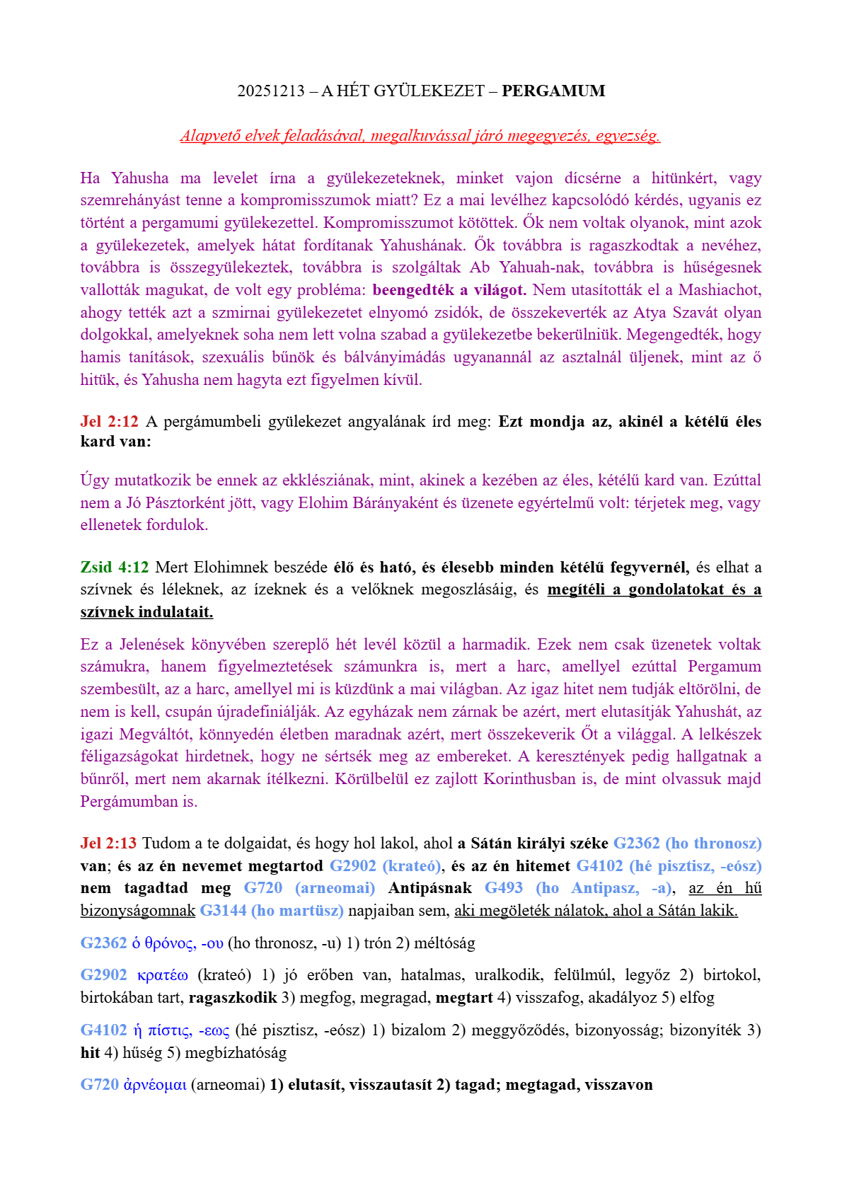 A HÉT GYÜLEKEZET – PERGAMUM